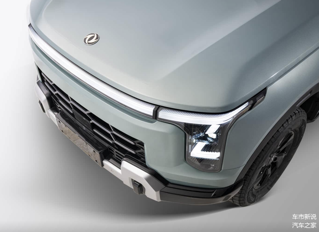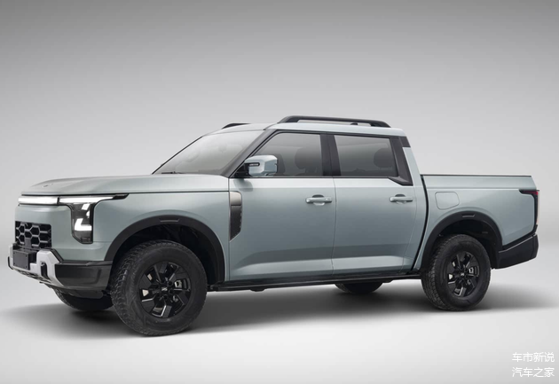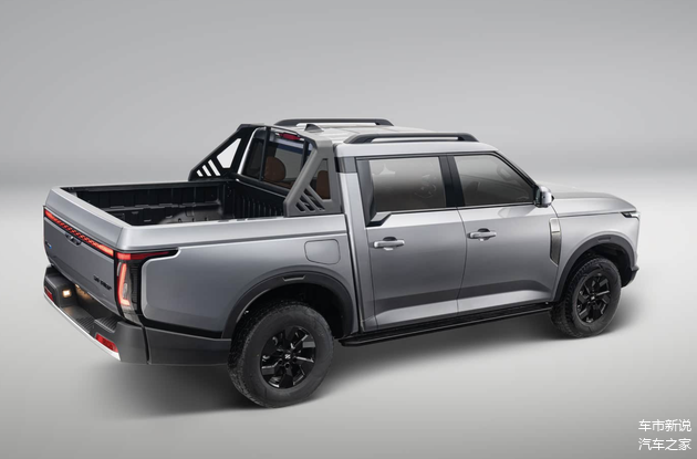 侧身姿态也主打一个方正,侧舷窗、机盖与货箱高度一致,让侧面看起来挺拔又强壮,安全感十足。搭配科技感十足的悬浮式车顶,在降低视觉重心的同时,还提升了整车的时尚感。Z字形的尾灯,也与Z型前大灯相呼应。外观上的整体设计,放在整个皮卡车市场,都是很加分的存在。