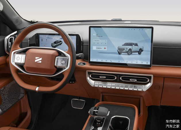 虽然是一辆大块头皮卡车,但是它的配置水平却丝毫不差。比如它配的是10.25英寸液晶仪表,搭配14.6英寸悬浮式中控屏幕,硬件配置比肩主流的新能源车。还内置腾讯车机生态系统,并支持DeepSeek大模型。它还能远程打开车门和车窗,空调和座椅也能远程调节,智能配置表现完全不输第一梯队。