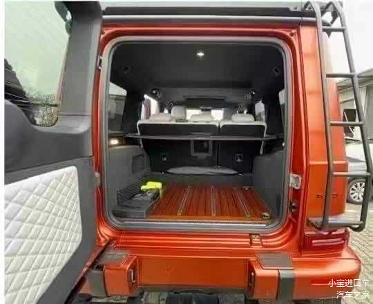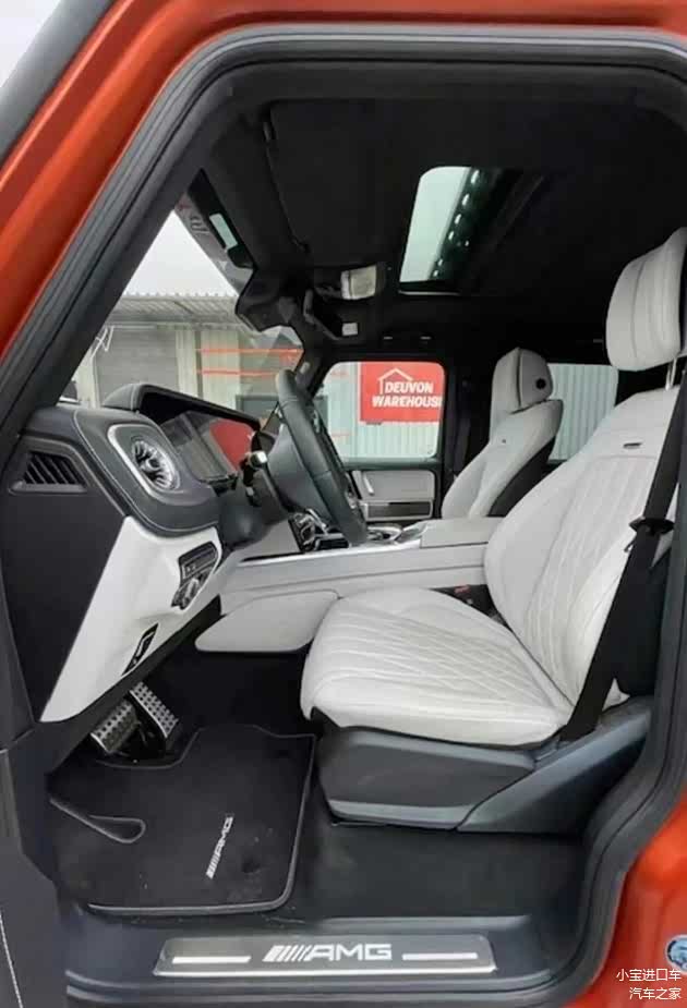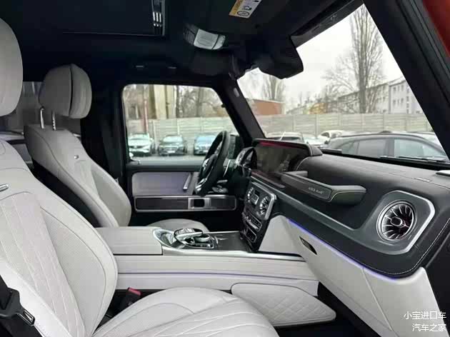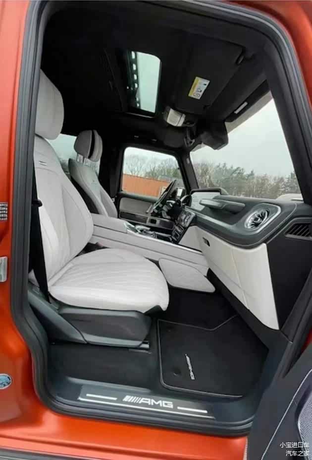 标配:4.0T V8 汽油发动机、雷达测距、360环影、AMG外观套件(AMG包围,AMG运动卡钳,前六后四活塞,AMG运动方向盘、AMG运动轮毂)、几何光束LED灯组、双边四出排气、前排座椅通风加热、后排座椅加热、真皮座椅、三把差速锁、阻尼悬挂、前后雷达、自动泊车、停车辅助、并道辅助、大G专属隐形天窗、麂皮内顶、二排隐私玻璃、柏林之声音响等。
