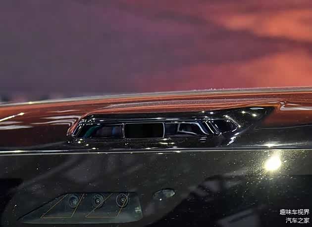 根据在车展上亮相的实车来看,新车的外观延续了极氪 009 的设计理念,方正的车身造型彰显出旗舰级的大气与稳重。前脸部分,大面积镀铬竖条进气格栅搭配分体式大灯,营造出强烈的视觉冲击。横向长方形的前大灯轮廓,搭配上下笔直修长的 LED 日行灯,与极氪 009 既有相似之处,又独具特色。值得一提的是,车顶配备的激光雷达,预示着这款车在智能驾驶方面将有着出色的表现。