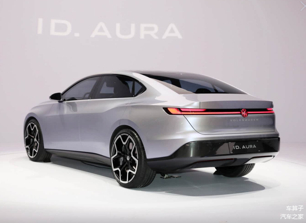 车身侧面,ID.AURA以“丝滑曲线”勾勒轮廓,22英寸双色轮毂与隐藏式车门把手强化未来感。尾部设计则以贯穿式尾灯与扩散器造型呼应前脸,LED灯带通过点阵式排列形成“呼吸灯”效果,夜间辨识度极高。