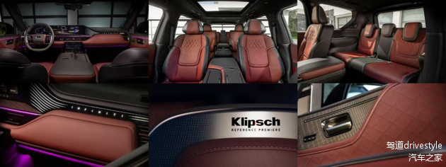 同时,英菲尼迪携手美国教父级音响品牌Klipsch杰士,为QX80打造了专属24扬声器Reference Premiere音响系统,带来非凡听觉盛宴。其中,前排搭载独立音区功能的头枕音响,可单独播放内容,让前后排互不干扰,各有所享。