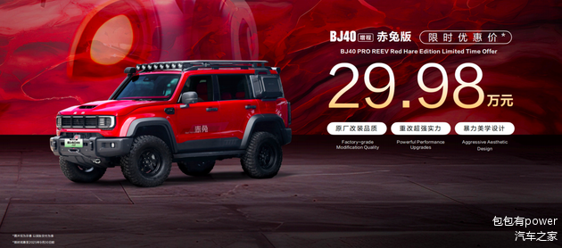 4月23日,北京越野以“智变·新程”为主题,在2025上海国际车展揭幕全新力作——BJ40增程赤兔版,并宣布限时优惠价29.98万元(截止至9月30日)。发布会同步公开了满油满电续航实测数据及延期交付用户权益,展现品牌对产品与服务的双重承诺。
