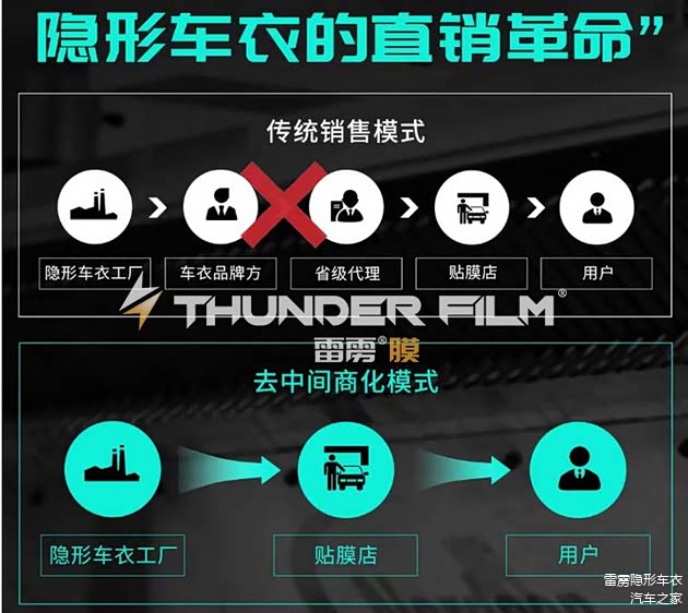 2、客户价值至上:雷雳隐形车衣秉持“客户价值至上”的原则,采用全新的品牌运营模式,垂直加盟只做服务车主的终端门店、4S店以及电商平台,大大降低了广大车友的贴膜成本。