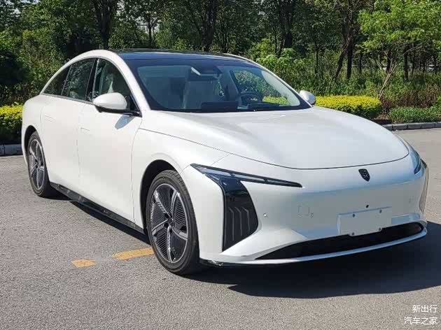 外观方面,新车采用与纯电版一致的外观设计,狭长的日行灯和下方的大灯组相连,构成了前脸的大元素,唯一不同的或是车标的颜色,纯电版为白色,而增程版申报图为黑色。