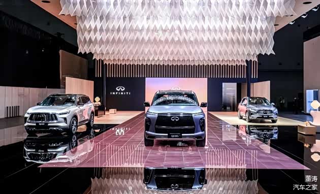 英菲尼迪以“无限「新」境”为主题,携全球旗舰车型全新QX80完成中国首秀。这款全尺寸SUV搭载与GTR同源的3.5T V6双涡轮发动机,匹配自适应空气悬挂。内饰采用勃艮第红半苯胺真皮座椅及激光雕刻木饰板,配备24扬声器Klipsch音响系统。
