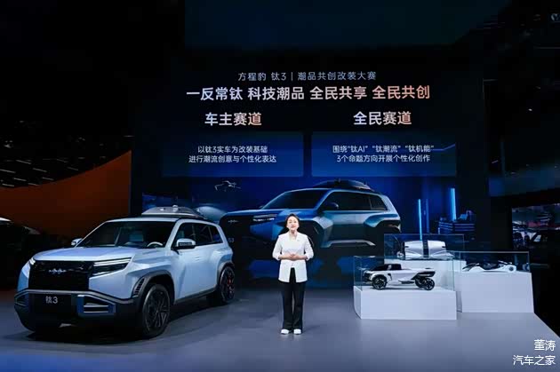 方程豹品牌携豹5、豹8、钛3三款车型首次同台亮相2025上海车展,并发布钛3潮品共创改装大赛,设立全民与车主两大赛道,投入百万奖励。钛3作为A级SUV新爆款,主打“钛潮流”属性;豹5智驾版融合比亚迪与华为智驾技术,蝉联硬派越野销冠;豹8无人机版搭载车载无人机系统,现场演示一键跟拍。展台推出“豹8维鲸泰坦套件”等三款潮改版本,强化产品个性化。五大互动体验区及无人机表演吸引观众,展现品牌科技与设计实力,深化“求解生活”理念。