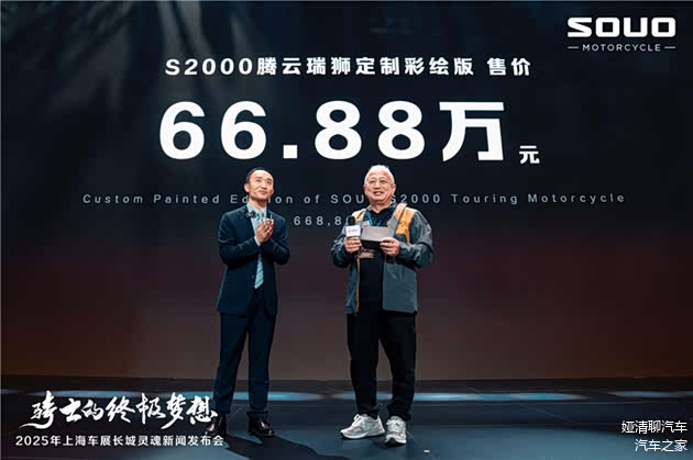 【2024年4月24日,上海】在万众瞩目的上海国际车展上,长城灵魂摩托以“骑士的终极梦想”为主题,举办新闻发布会。长城灵魂融合中华民族千年非遗工艺与尖端科技的限量典藏版车型长城灵魂S2000GL“腾云瑞狮”定制彩绘版首次震撼上市,售价66.88万元,揭幕即售出,宣告中国高端重机摩托车正式进入文化科技双驱动时代。