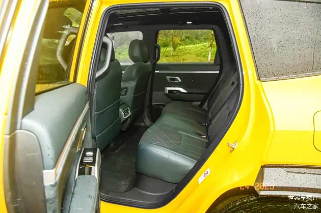 来到二排,整个大沙发座椅乘坐柔软舒适,很有家庭休旅风的感觉,并且门板还有Tipe-C充电口,手机党的福利。其次座椅还配有侧安全气囊,前后还配备双层隔音玻璃,配置拉满了。