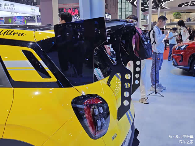 2025年上海车展上,广汽埃安UT Ultra正式亮相,该车整车的设计借鉴了今年爆火的小米SU7 Ultra,采用同款明黄色涂装,并且从车头延伸出两条灰色的装饰条直指挡风玻璃前沿,舱盖上也设置了左右两个开孔,整车看上去非常吸睛。
