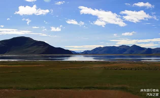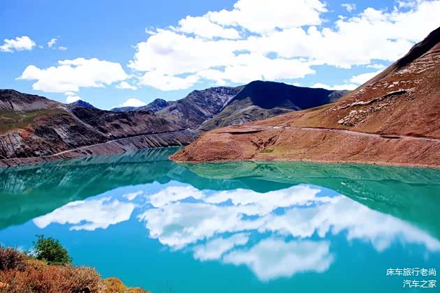 △空母措的清晨,雨后空气清新,白云倒映在蓝色的湖面上