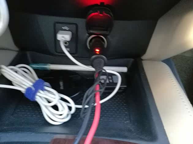 △车载充电器,很方便,行车时就可以给大电源补充电力