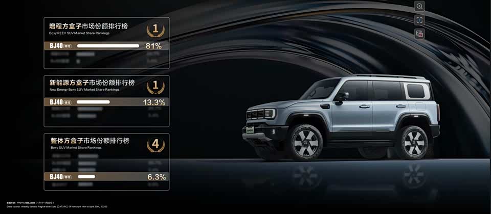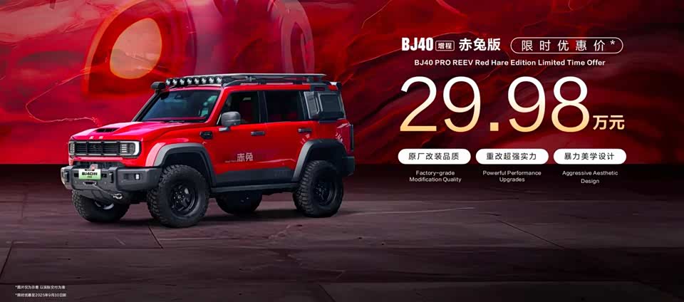 4月23日,以“智变·新程,BJ40增程来了!”为主题的北京越野新闻发布会在2025上海国际车展举办。北京越野发布了BJ40增程赤兔版,限时优惠价29.98万元,并公布了满油满电千里续航测试结果,以及BJ40增程延期交付权益。BJ40增程配有40.3度三元锂的大电池和82升大油箱,满油满电综合续航1200公里理论值。此前 ,360集团创始人周鸿祎已试驾体验BJ40增程,对其颜值、性能、安全都十分认可,并立马下单。发布会现场,北汽集团董事长张建勇为周鸿祎交付新车。