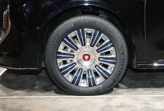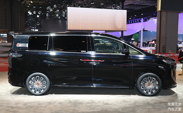 车身侧面部分的整体造型和红旗HQ9基本一致,细节装饰上有所调整。其中D柱使用了全新的带有祥云图案的饰板装饰,并且还带有金葵花车标,另外轮毂上也带有祥云装饰,金葵花车标很醒目。