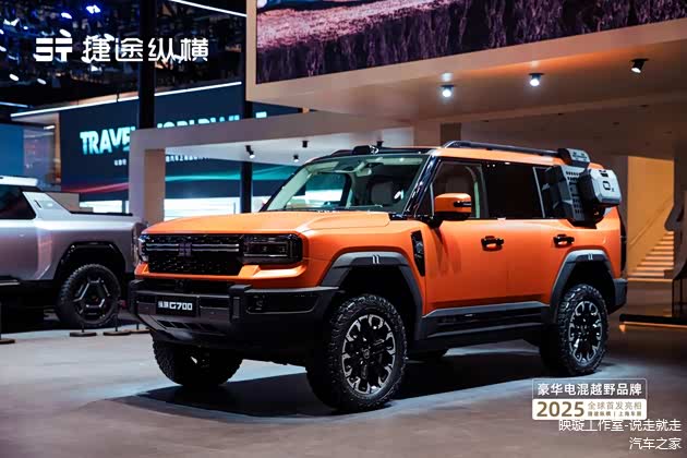 捷途纵横G700定位于“全地形豪华电混越野SUV”,采用纵横之道硬派方盒子设计,搭载纵横灵感座舱,全车超77英寸屏幕,打造沉浸式智能交互体验。新车搭载鲲鹏超能混动CDM-O系统,凭借热效率高达45.5%的2.0TD混动专用发动机、2DHT混动专用变速箱、越野专用800V 4C双层神行电池等核心技术,实现多个行业第一,是当下混动越野的最优解。纵横G700搭载智能全地形模式、2挡低速四驱、越野三把锁系统,结合900mm涉水能力与IP68级发动机防水,全面保障极端路况下的稳定性与脱困能力,满足用户征服山河的越野需求;配备猎鹰智能方案700S,具备全地形智能越野辅助与越野领航能力,构建百万级智能守护。