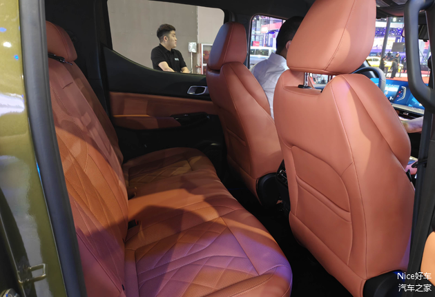 尺寸方面,新车长宽高分别为5380/1980/1920mm,轴距为3180mm,额定载质量为350kg。车身侧面配备固定式踏板,并配备全新18英寸多辐式黑色轮圈和固特异AT全地形轮胎搭配,在非铺装路面预计能带来更好的表现。车尾造型与长安猎手保持不变,提供不同款式的防滚架和后保险杠选择,尾门左侧标有“长安启源”的标识,在打开后货斗门后还能通过二级开关分段开启,货斗侧边配备3.3kW大功率放电面板,并带有220V插头。
