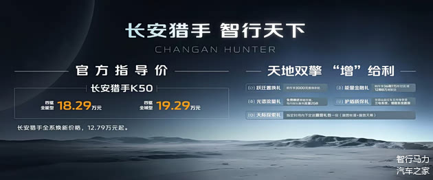 长安猎手K50四驱全域型,让远方没有边界,官方指导价19.29万元;