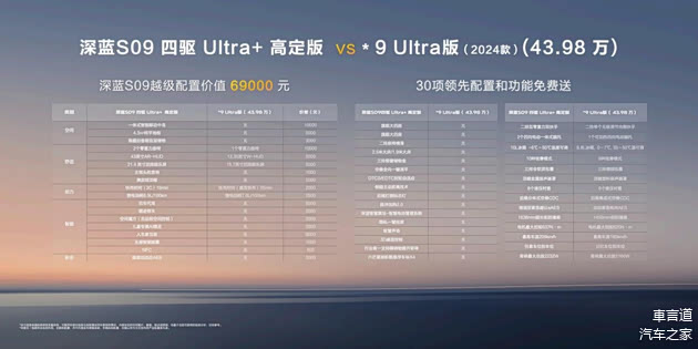深蓝S09作为一台“家庭大六座智慧旗舰SUV”,从产品力来看,它完全就是一台为年轻奋进者打造的家庭大六座智慧旗舰SUV,30万价格获得百万级享受,不得不说非常具有吸引力。从“体验领先、价值越级”的驾乘体验,到为用户带来更具魅力的智慧出行,无论产品价值和品牌实力方面,深蓝S09不输给市面上任何一款同类产品,相较而言,深蓝S09空间全面越界,智能超乎所想,担得起大六座9系新标杆。而且,拥有深蓝超级增程2.0,华为全家桶、全新平台和底盘等一系列行业领先的技术优势的深蓝S09,更能重新构建旗舰大六座SUV的标准。让更高级的享受唾手可得,把体验升上去,把价格打下来,深蓝S09智能豪华真平权,正在30万级大六座SUV市场,打响“越级之战”!如果你正在为家人选择一辆大六座SUV,那就选深蓝S09,大六座9系新标杆,无需多问,无需多想,闭眼入!