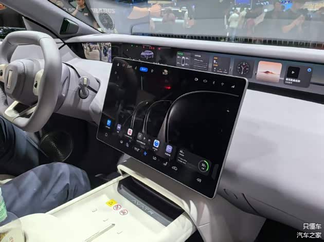 内饰也是继续保留了阿维塔的高科技属性,环绕式的前置屏幕确实非常具有视觉冲击力,同时整车内饰的用料也是极其考究,不仅采用了大量的软包材质,并且还使用了Nappa真皮、超纤仿麂皮以及桦木等。