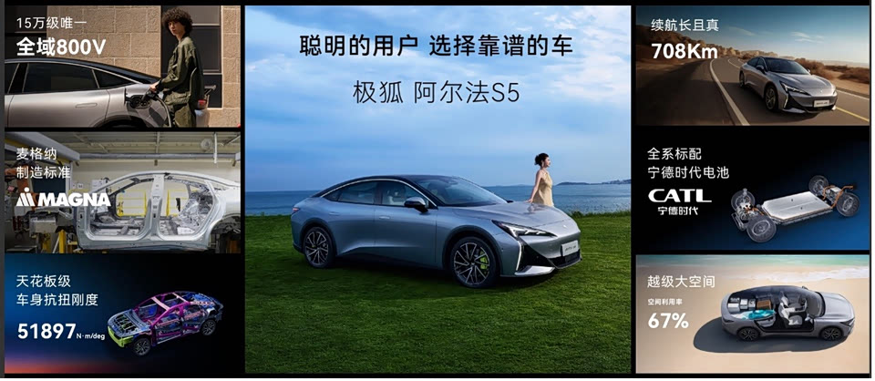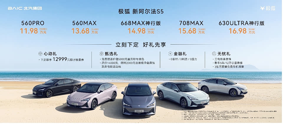 极狐也是好起来了,一季度销量怒增近7倍,新阿尔法S5上海车展也迎来了上市。先说销量,去年连续5个月销量破万后,今年3月,极狐月销首度突破1.3万辆,位居纯电新势力TOP 6,势头非常猛。其中,阿尔法S5这款车就是极狐主销车型之一。这次新款上市,竞争力则更强了。价格层面,新车全系价格区间11.98-16.98万,预算14万左右想买纯电B级轿跑的,真推荐看看这款车。