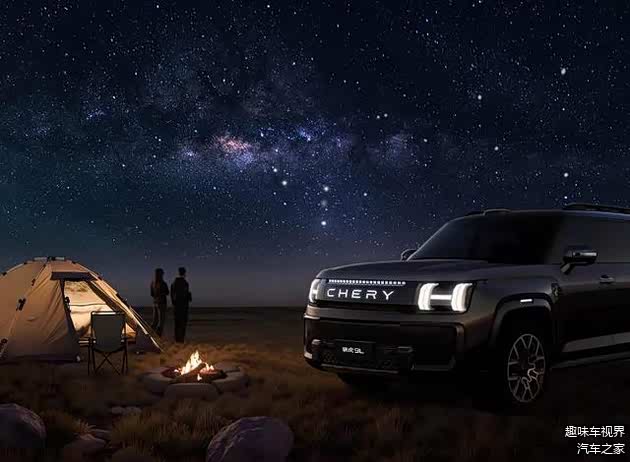 车身侧面,简洁且硬朗的线条贯穿车身,让整车看起来更加干练。轮眉位置带有示宽灯,这一设计不仅在视觉上增强了车辆的立体感,还有望作为辅助驾驶状态警示灯,提升行车安全性。常规造型的门把手、20 英寸多辐条铝合金轮辋以及车顶行李架等配置的应用,既满足了实用性需求,又进一步强化了车辆的越野气质。车尾部分同样采用方正的造型,竖向布局的尾灯组与高位刹车灯相互呼应,点亮后形成独特的视觉效果。尾门位置的大尺寸“CHERY”字母标识与车头相呼应,左下角的 “9L” 标识则清晰地彰显了车辆身份。