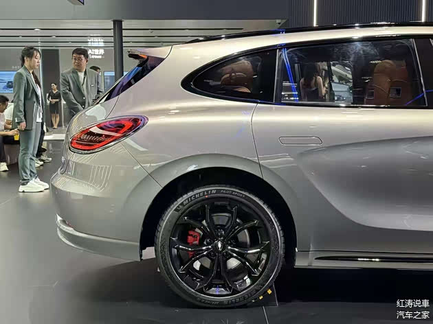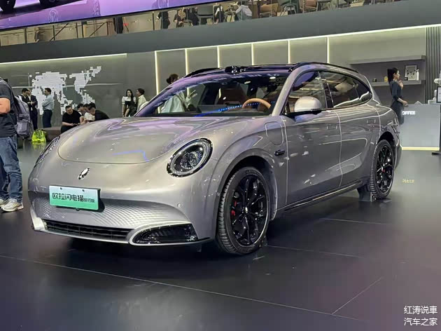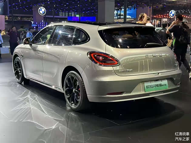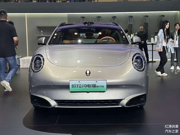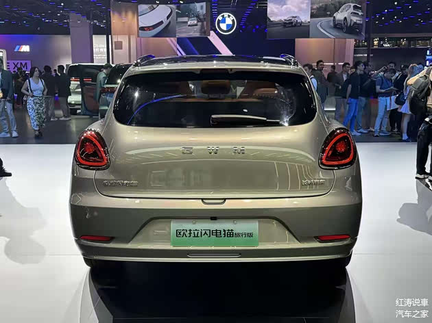 车身侧面还是那条很有特点的腰线,采用了隐藏式门把手,而欧拉闪电猫旅行版和现款车型的区别是,到了B柱之后减弱了车顶的下滑趋势,相对平直的车顶线条使其具备旅行车的气质,并且车顶末端设计了小型扰流板,展车配备了19英寸黑色轮毂,搭配红色刹车卡钳,前翼子板位置有高清摄像头,尾部继续使用类似椭圆形的尾灯,内部红色光带晶莹剔透,欧拉闪电猫旅行版是掀式尾门,预计后备厢容积和装载能力会优于现款。