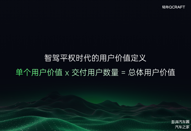 在本届车展上,轻舟智航还前瞻性地提出了“智驾平权时代的用户价值定义”,即“单个用户价值 x 交付用户数量 = 总体用户价值”。通过先进的技术范式和高效的数据闭环,轻舟智航不断提升辅助驾驶技术的单个用户价值;同时,通过高效的硬件应用和务实的冗余设计,用有限的资源实现更高的性价比,不断提升辅助驾驶技术可触达的用户总量。