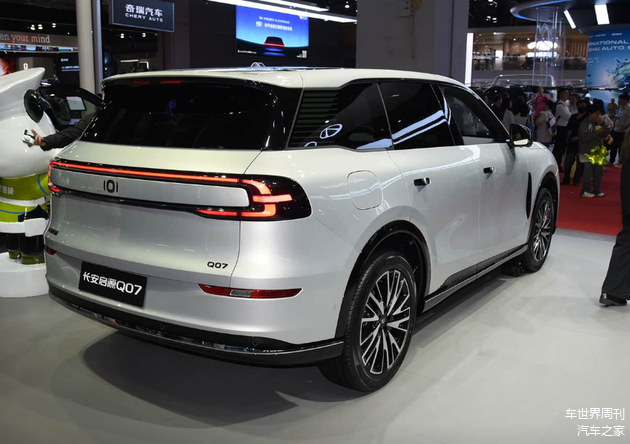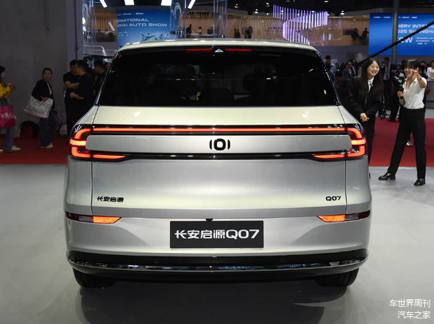 车尾部分,长安启源Q07采用了贯穿式尾灯组,并在两侧进行分层式设计,配合两段式高位刹车灯,点亮后很有辨识度。此外,新车下包围还采用贯穿式镀铬装饰,营造出不错的立体感,也与前包围形成很好的呼应。