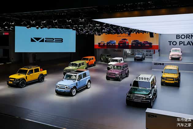 依托平台延展性,车展首发V23皮卡概念车与V23敞篷概念车。前者针对国内玩乐型皮卡用户及海外市场,车身长度拓展至4600mm以上,后箱通过导轨系统、挂架、外接拓展接口及承重超100kg的折叠尾门,化身“移动工作站+户外生活舱”,满足骑行、垂钓等场景需求;后者融合硬派越野与复古精致感,经典布质软顶设计重现黄金越野时代的自由驾趣,开创高姿态越野车的开放式驾驶体验。 新增蓝色(清新科技感)、紫色(金属质感神秘色调)两款配色,使V23车身颜色达9种,覆盖橙、白、黑、银、灰、绿、黄等多元风格;前装生态提供高亮黑格栅、多尺寸轮毂等改装套件,用户可通过官方App的3D可视化选装系统实时预览效果,实现“出厂即改装车”的个性化交付;后装生态已上架超90件精品(如旅行穿越套装、顶棚iPad支架),并开放第三方合作,构建“从功能到情感”的全链路改装生态。技术生态破局:换电合作+全球化研发赋能