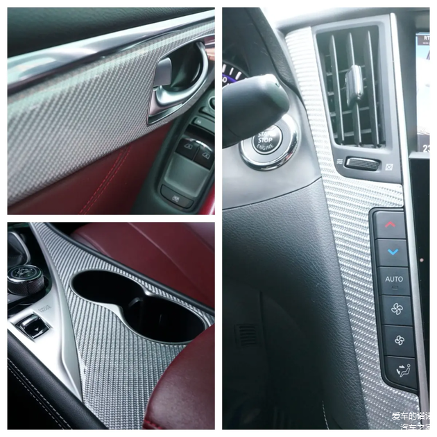 内饰上的碳纤维使用也是一大卖点,顶级的真皮材质+目视区域内大量的碳纤维+优良的包裹性,是这台Q60S用来向它的主人表示诚意并希望打动驾驶者的语言。