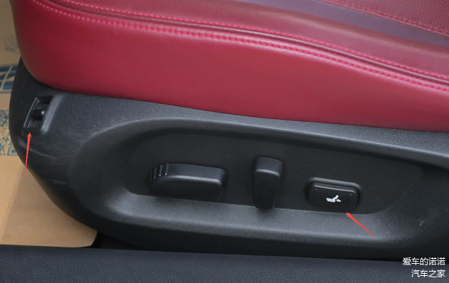 主驾驶的这两个按钮也要介绍下,前边的是控制侧翼夹紧度的,后面那个是靠背腰托的调节。要相信日产的高端品牌英菲尼迪一样继承了对座椅设计的理解,这是两个仅仅驾驶者才有的特权,一切为了提高驾驶体验。