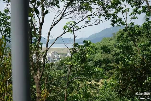 透过树叶能看到远处的水库吗?水库的堤岸上还有个“光”字,看攻略到顶上也是看这片水库。