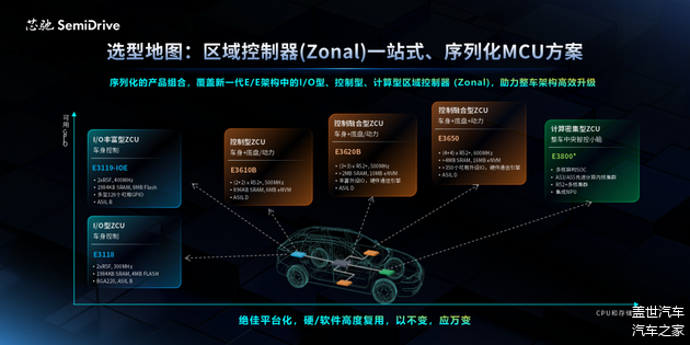 以旗舰智控E3650为代表,芯驰E3系列提供序列化的产品组合,覆盖新一代E/E架构中的I/O型、控制型、计算型区域控制器,助力整车架构高效升级。