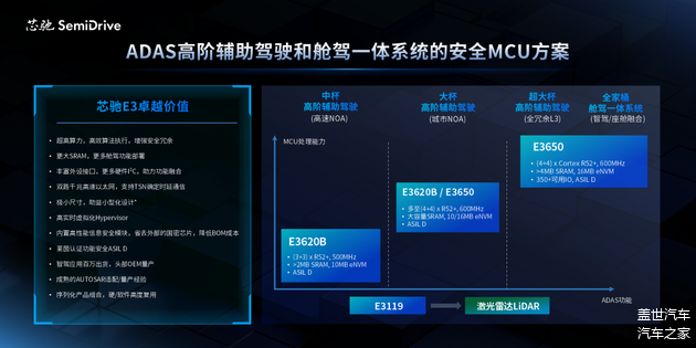 E3650、E3620B均可支持ADAS和舱驾一体系统的安全MCU方案
