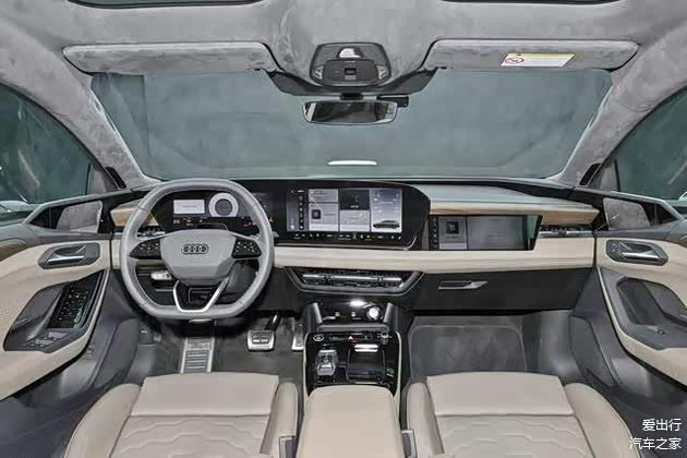 内饰布局延续奥迪C9家族化设计语言,中控台以四辐式平底方向盘为核心,曲面双联屏(11.9英寸液晶仪表+14.5英寸中控屏)与10.9英寸副驾娱乐屏构成“三屏环绕”交互中枢。其中,副驾屏搭载主动隐私模式,可独立运行爱奇艺、B站等国产应用,避免干扰驾驶员。