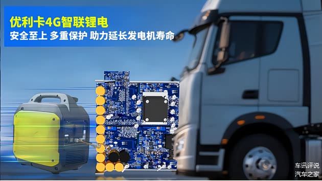 在安全方面,优利卡4G智联锂电池做得相当到位。它是专门为卡车启动时候需要大电量设计的,能避免发电机电流太大把电池搞短路,保证每次都能顺利启动车子。