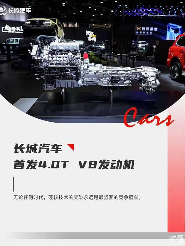 坦克品牌展台前,安静摆放的长城汽车4.0T V8双涡轮增压发动机,绝对称得上中国汽车制造工业史上一项极其重要的突破性技术发布。