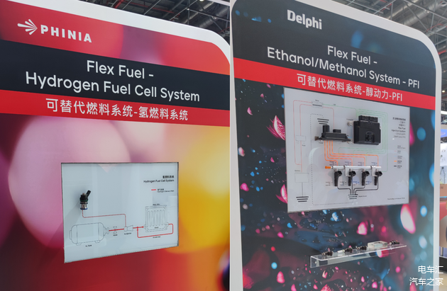 针对全球碳中和目标,费尼亚展示了灵活燃料技术解决方案,兼容乙醇、甲醇等醇类燃料及氢能应用。其中氢气喷射系统作为氢燃料电池汽车的关键部件,通过精准控制氢气供给提升燃料电池效率;而醇动力技术则依托现有燃油系统架构改造,为传统内燃机向低碳转型提供过渡方案。