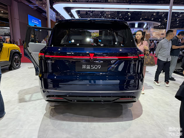 颜值尚可,和理想、问界的差异化依旧比较明显,只能说类别上相似,但是深蓝S09显然有自己的辨识度。前脸的大灯有一根竖条设计,虽然谈不上好看,但是可以一眼识别出和理想的不同,而尾部,深蓝的LOGO镶嵌灯带上,而且还可以发光,这显然也是独有的设计。