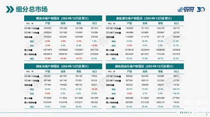 而在2024年,中国新能源汽车累计销量1089.8万辆,同比增长40.7%,从乘联会发布的数据统计来看,在2024年全年纯电车的累计零售销量为6313999辆。同比增长22.6%,而混动汽车累计零售销量4584380辆,同比增长76.9%,可以明显的看到,电车销量增幅有所缓和,混动汽车销量增幅较大。
