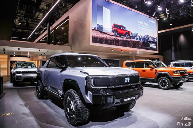 产品序列中,纵横G700定位全地形电混越野SUV,配备77英寸交互屏幕及700S猎鹰智能方案;纵横G900作为两栖车型搭载矢量四电机系统,轮端扭矩达18000N·m;纵横F700皮卡具备3.5吨牵引能力并配备智能拖车模式。展台同步呈现顶火、超境两款共创改装车型,分别强化公路性能与科技风格。