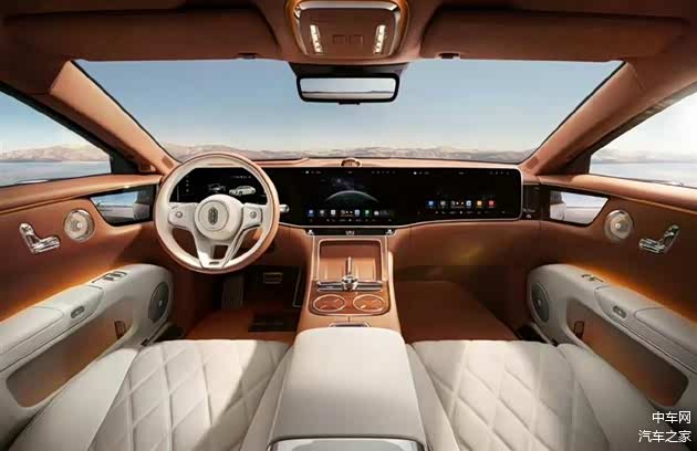 当然另一台预售价格百万级的尊界S800同样如此,在此次上海车展公布了内饰官图,豪华氛围的营造依旧到位。超大三联屏贯穿整个座舱,也是首个搭载双零重力座椅的旗舰轿车,还是用许多高端材料,比如高端进口木料、水晶装饰、金属饰材等等。但在细节部分比如座椅调节区、音响系统、车顶蓬等部分,还是能看到其他豪车品牌的影子。当然,一些好的设计总是心有灵犀,互相借鉴优化使用尚可。