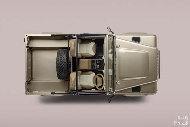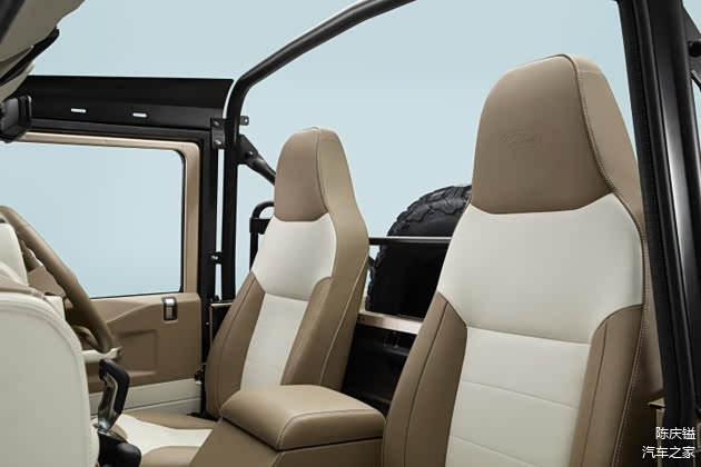 车室部分,Classic Defender V8 Works Bespoke 软顶敞篷版共有 5 种单色、8 种双色皮革内饰提供车主选择,包含饰板、缝线等细节,也可进行专属打造 ; 原厂强调,为满足层峰客群多元的购车需求,甚至可选配冲浪板架、酒类冷藏室等特殊配备。