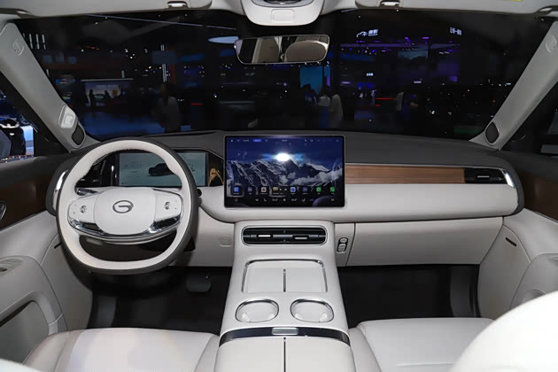 内饰方面,传祺向往S9前排座舱的设计排布与传祺向往S7一脉相承,配备平底两辐式多功能方向盘和大尺寸悬浮式中控屏,中央通道功能区设置有横向的双杯架和两个手机放置槽。在此基础上,传祺向往S9的仪表台及前排门板融入木饰,提供托斯卡纳的午后(浅色)、塞纳河畔的秋天(棕色)、威尼斯之夜(黑色)等内饰主题给用户选择。