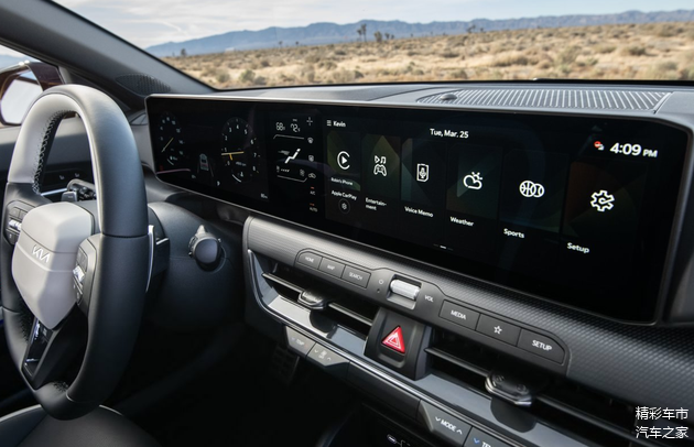 进入车内,最引人注目的是三屏联动系统——12.3英寸全液晶仪表盘+12.3英寸中控触控屏+5英寸空调控制屏(并没有副驾驶侧的屏幕),形成连贯的数字化操作界面。这套系统支持无线Apple CarPlay/Android Auto,并搭载起亚最新智联交互系统,语音控制识别率提升40%,可精准执行导航、音乐播放等指令。