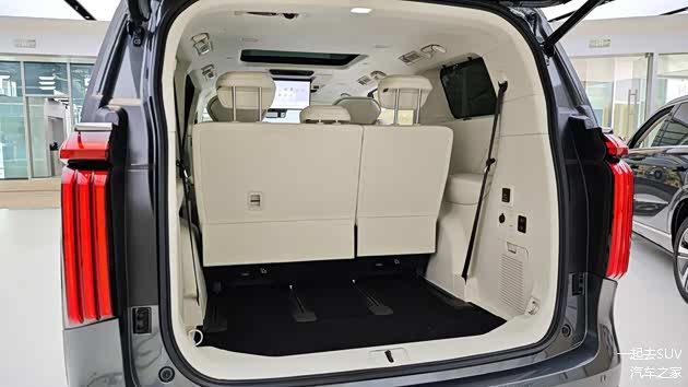 其它舒适性配置方面,后排小桌板、车载冰箱都有提供,同时基于超长的二三排座椅贯通式导轨,座椅可以提供640mm的移动距离,提供宽敞的乘坐空间,或压缩乘坐空间换取极致的后备厢装载能力。