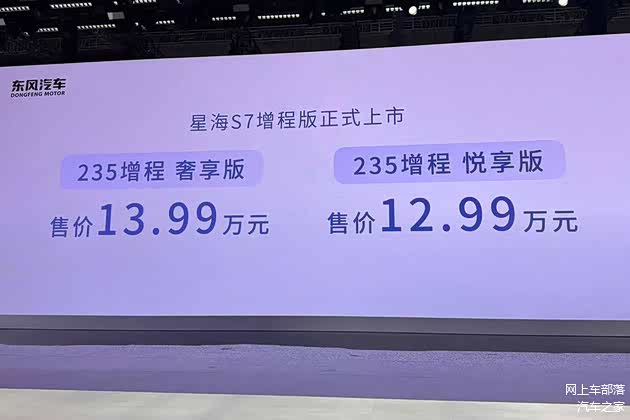 在2025上海车展上,东风风行星海S7增程版正式上市,新车共计推出了2款车型,官方指导价区间12.99-13.99万元,并推出多重购车权益。至此,星海S7可以提供纯电和增程两种动力形式可选。此外,新车同样应用了东风汽车最新推出的天元架构。