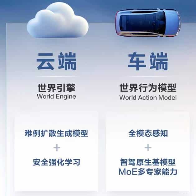 不过,就在当下低调宣传的背后,智驾技术正在迎来新的代际升级。在本次车展前,光锥智能了解到智驾研发的最新技术,已经从“端到端”升级至“更大的模型+世界模型训练+强化学习+云端蒸馏”的方案。