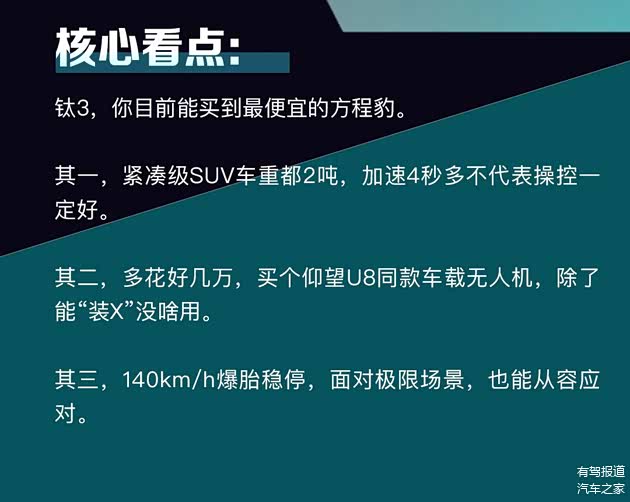 四驱版百公里加速不到5秒,同级油车没法比,亏电油耗4L/100km不准确,钛3全系纯电,没有混动。