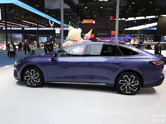 来到车身侧面,侧面造型修长,车顶线条流畅,腰线飘逸。采用隐藏式门把手,五幅式轮圈。车身尺寸方面,新车长宽高分别为5005/1900/1505(1490)mm,轴距为2900mm。风阻系数0.198Cd。